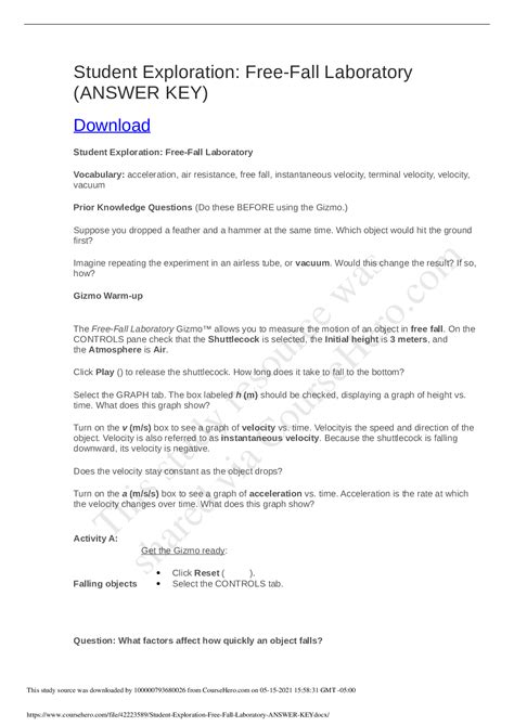 Download Student Exploration Fall Laboratory Answer Key Doc
